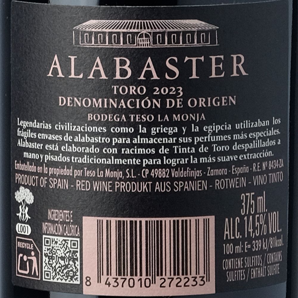 Alabaster 2023 representa un exquisito vino tinto de la denominación de origen Toro, creado por la renombrada Bodega Teso La Monja en Valdefinjas, Zamora. Fundada por la familia Eguren, propietaria también de la emblemática bodega Sierra Cantabria en La Rioja, esta obra maestra se confecciona con la variedad Tinta de Toro, cultivada en viñedos antiguos y de bajo rendimiento, pre-filoxéricos.