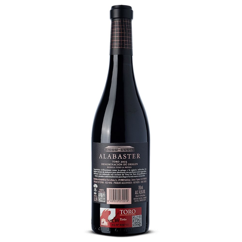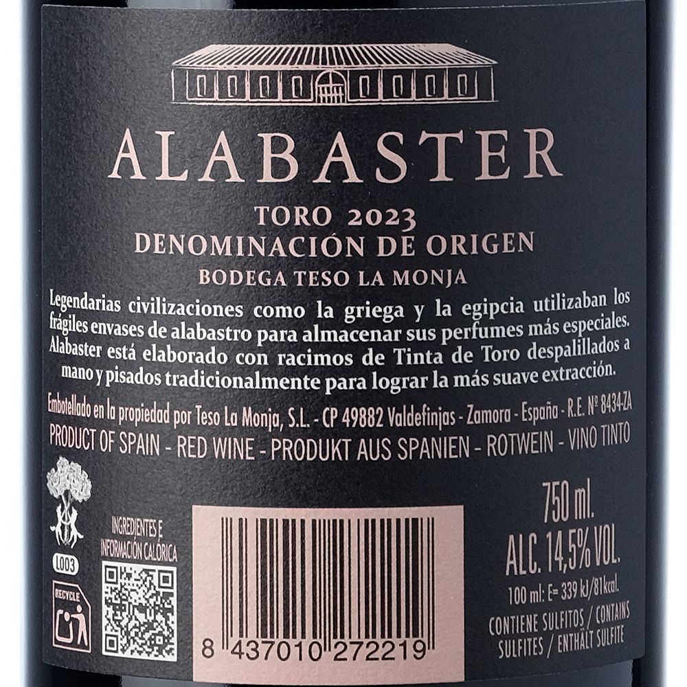 Alabaster 2023 representa un exquisito vino tinto de la denominación de origen Toro, creado por la renombrada Bodega Teso La Monja en Valdefinjas, Zamora. Fundada por la familia Eguren, propietaria también de la emblemática bodega Sierra Cantabria en La Rioja, esta obra maestra se confecciona con la variedad Tinta de Toro, cultivada en viñedos antiguos y de bajo rendimiento, pre-filoxéricos.