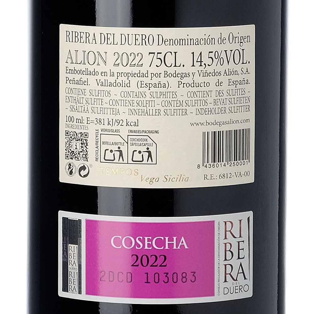 El Alión 2022, uno de los vinos más codiciados y prestigiosos de la D.O. Ribera del Duero, es una obra maestra elaborada por la bodega Alión, parte del renombrado grupo vinícola Tempos Vega Sicilia. Este exclusivo vino tinto se produce al 100% con uvas de la variedad Tempranillo, seleccionadas cuidadosamente de viñedos situados en los mejores terruños de la región. La sinergia entre los suelos complementarios y la experiencia compartida con Vega Sicilia da como resultado un vino con una estructura firme y un carácter inconfundible.