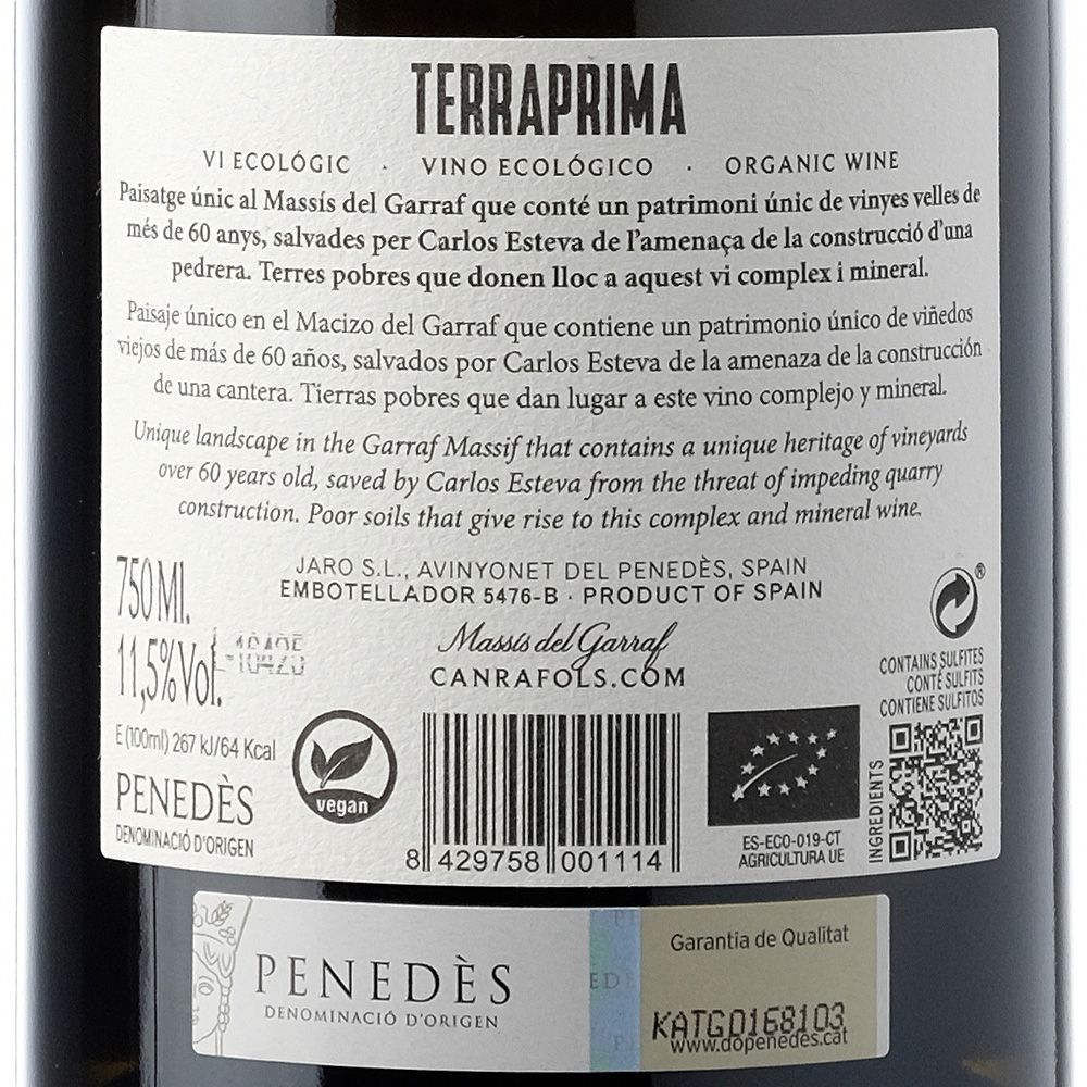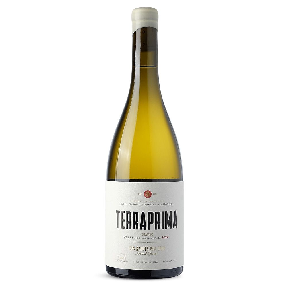 Can Ràfols dels Caus Terraprima Blanc 2024 es un vino blanco seco de la D.O. Penedès, elaborado con un 80 % de Xarel·lo y un 20 % de Macabeu. Este vino forma parte de la línea Terraprima, un proyecto impulsado por Carlos Esteva que refleja la recuperación de un viñedo histórico en el Macizo del Garraf. Estas parcelas, situadas en Mas Sunyer, estuvieron amenazadas por la construcción de una fábrica de cemento, pero fueron salvaguardadas gracias a la adquisición de la finca, preservando así un valioso patrimonio vitícola.