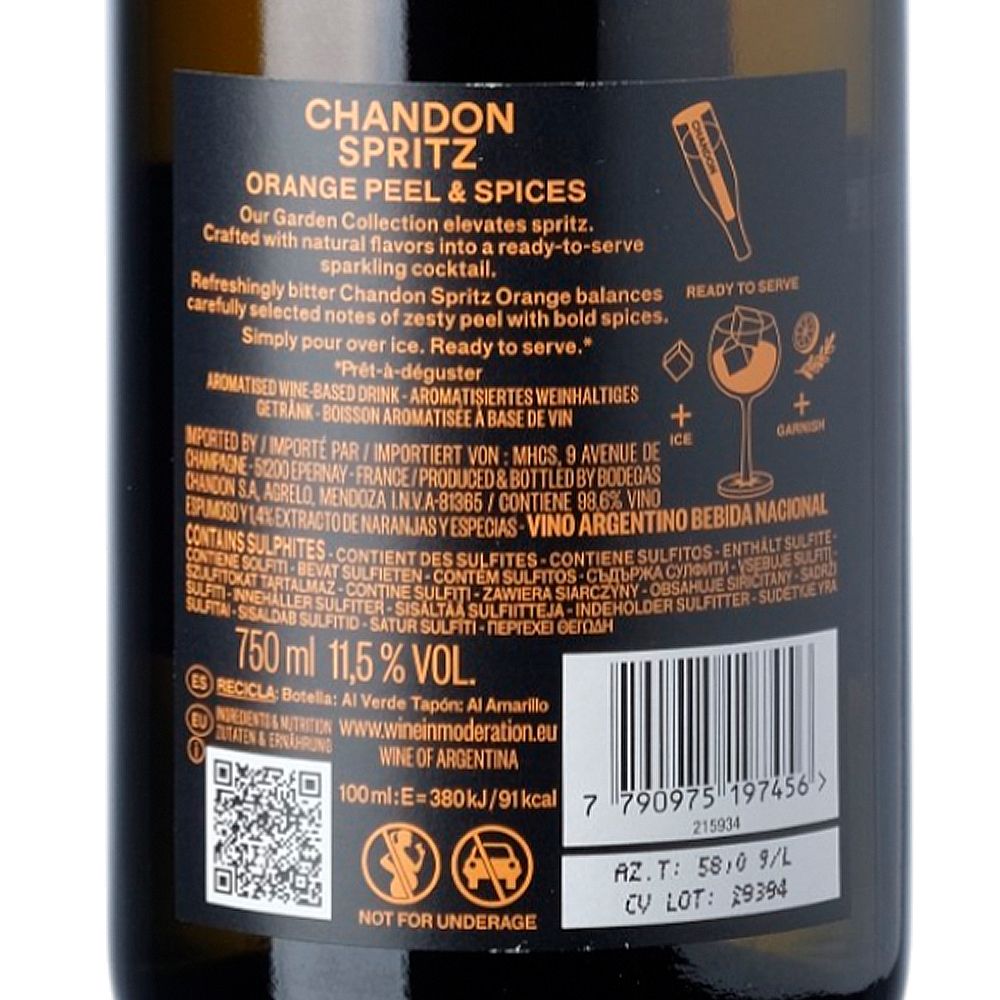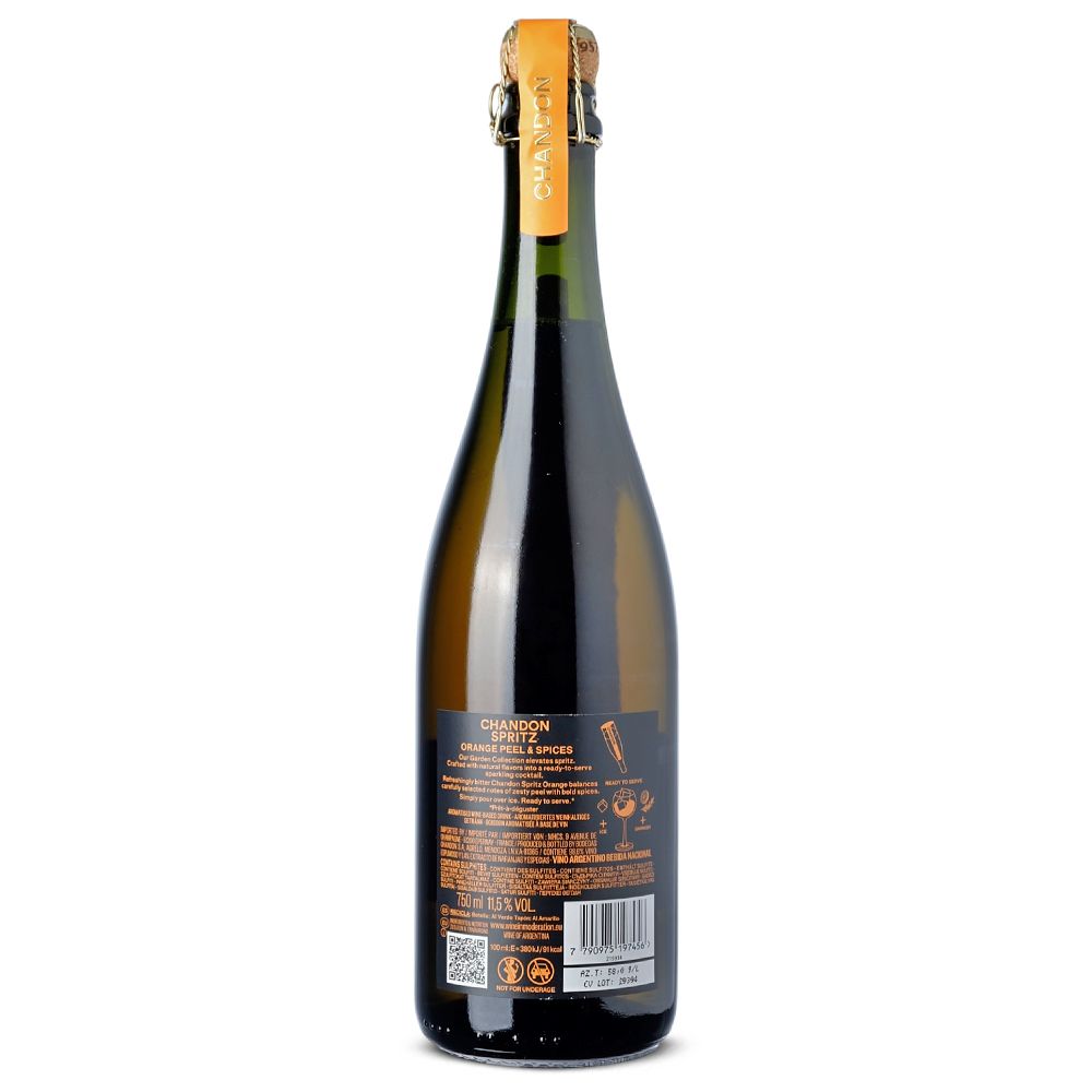 Este espumoso único revoluciona el mundo del spritz, combinando la elegancia del vino espumoso de Chandon con una mezcla exclusiva de bitters, que incluye naranjas frescas de origen local, cáscaras secas, hierbas y especias seleccionadas. Inspirado en el gusto argentino por los sabores amargos, su sabor es tan auténtico como delicioso.