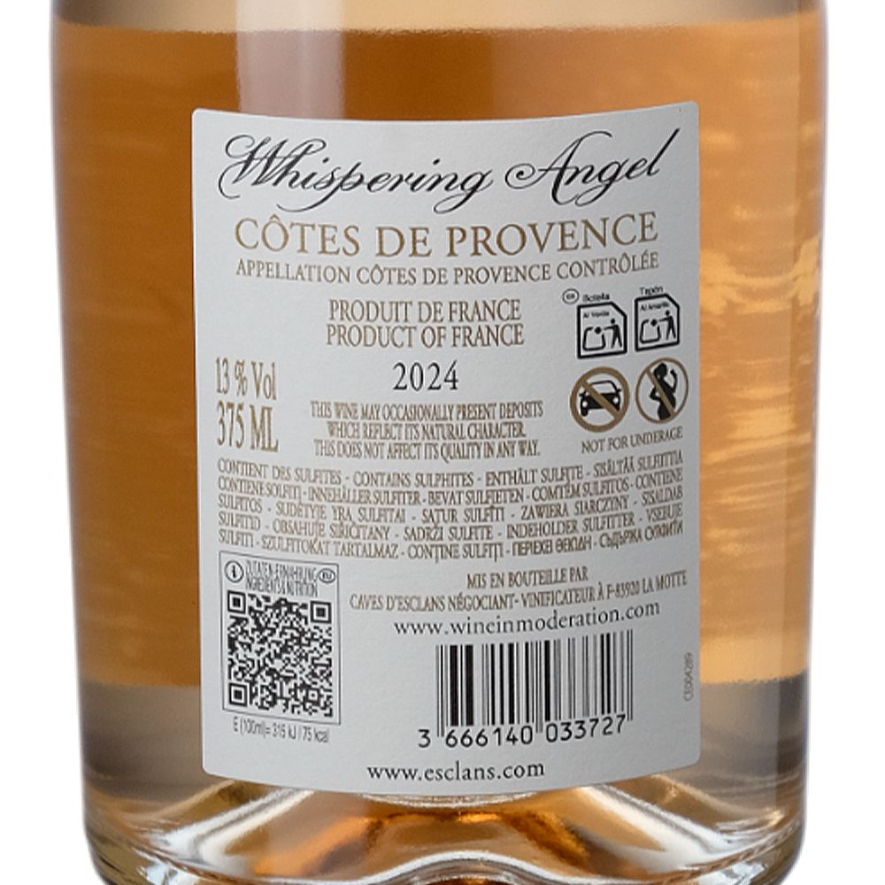 Whispering Angel Rosé 2024, un vino rosado excepcional elaborado por la prestigiosa bodega Château d’Esclans en la región AOC Côtes de Provence (Provenza, Francia). Este rosado, concebido con uvas Garnacha, Cinsault y Rolle (Vermentino), encarna la visión innovadora de Sacha Lichine de crear los mejores vinos rosados del mundo, marcando así el inicio del "Renacimiento rosado".