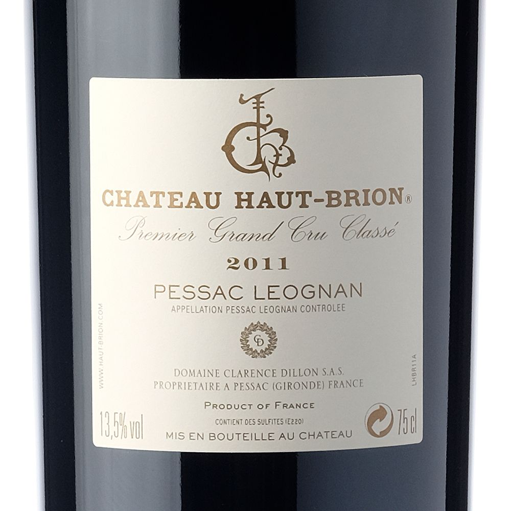Château Haut-Brion 1er Grand Cru Classé 2011 es un vino tinto seco, compuesto por una equilibrada mezcla de Cabernet Sauvignon (46%), Merlot (35%) y Cabernet Franc (19%). Como el más antiguo de los cinco primeros vinos de Burdeos y uno de los más renombrados a nivel mundial, Château Haut-Brion se encuentra en la región de Pessac-Léognan, al sur de la ciudad de Burdeos, distinguido por su ubicación apartada de los demás grandes vinos de Médoc.