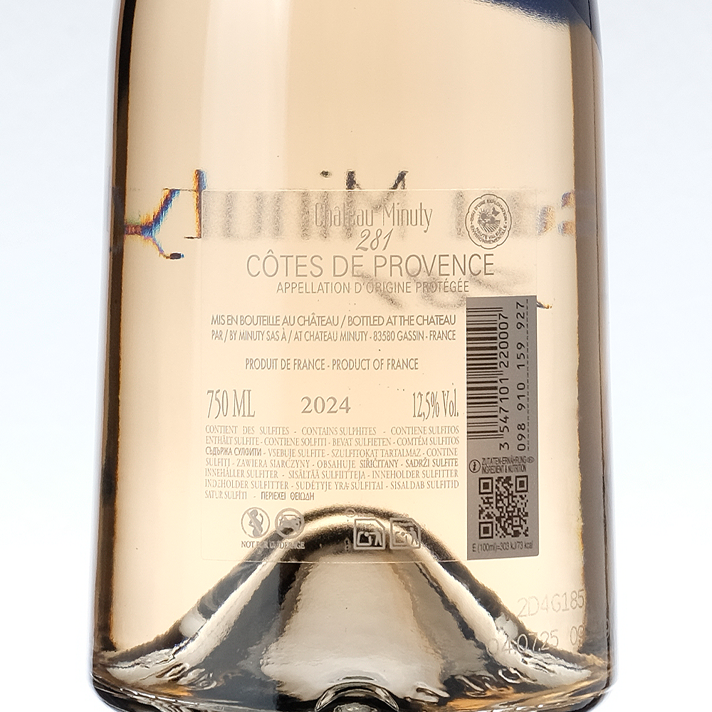 Château Minuty 281 es un exquisito vino rosado producido por la reconocida bodega Minuty en la AOC Côtes de Provence, Francia. Gabriel Farnet, dueño también del Domaine de Châteauneuf en Vidauban, adquirió el Château Minuty en 1936, una finca construida originalmente bajo el mandato de Napoleón III. El Château Minuty 281, lanzado por primera vez en 2015, se elabora exclusivamente con una selección clonal de uvas de garnacha, con una edad promedio de 25 años, beneficiadas por el influjo marítimo del Domaine.