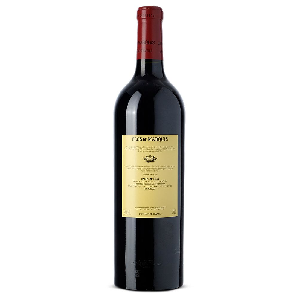 Clos du Marquis Saint-Julien 2022 es un vino tinto seco de alta gama, elaborado con una combinación precisa de 45,5% Merlot, 44,5% Cabernet Sauvignon y 10% Cabernet Franc. Nacido en el prestigioso terroir de Saint-Julien, en el corazón de Burdeos, este vino encarna la elegancia y el equilibrio característicos de la región. Su primera añada se remonta a 1902, originaria del histórico Petit Clos junto al Château de Léoville Las Cases, residencia del Marqués de Las Cases.