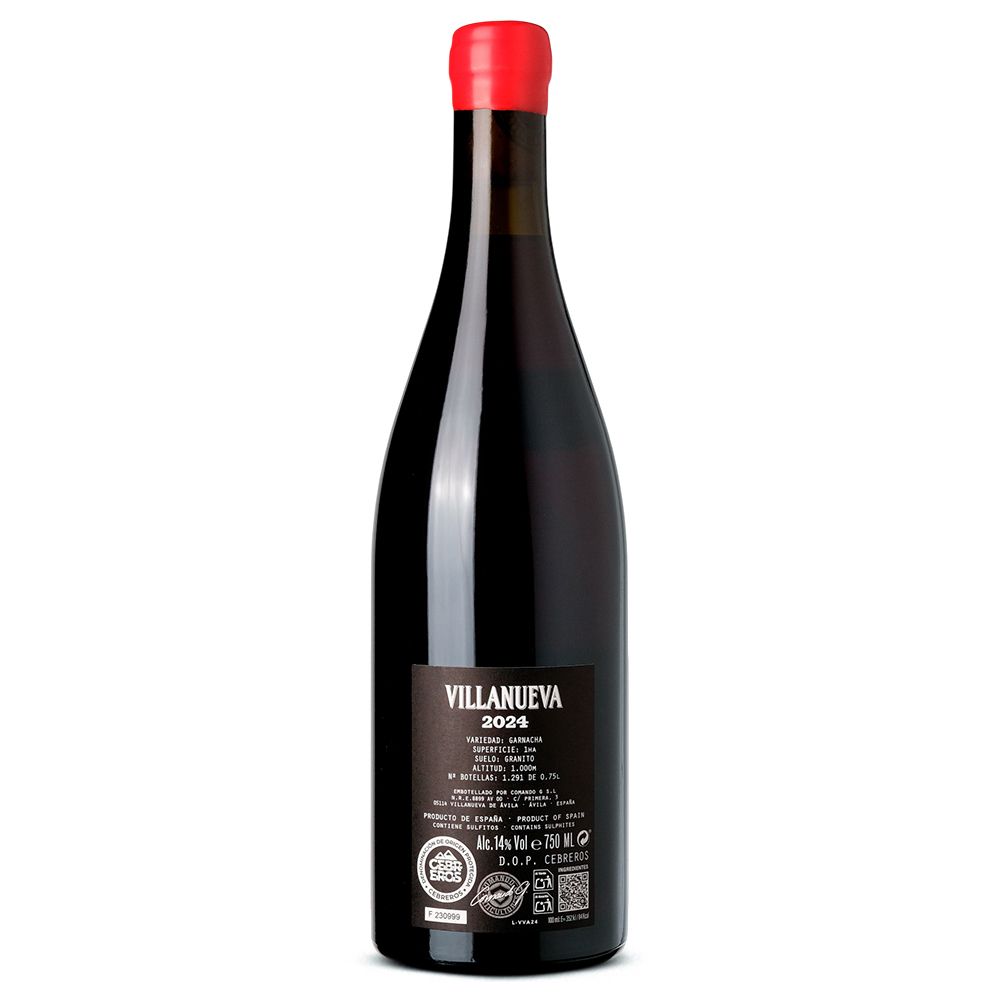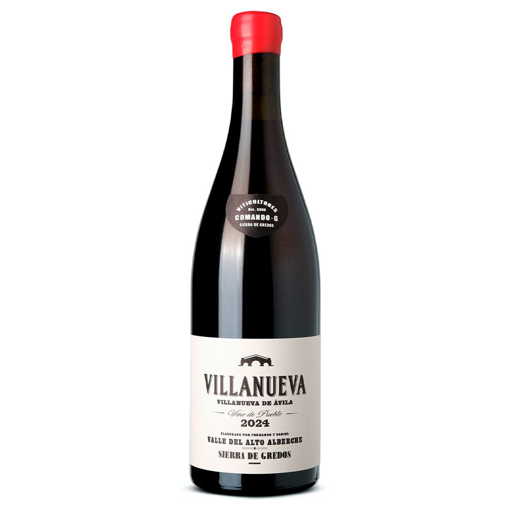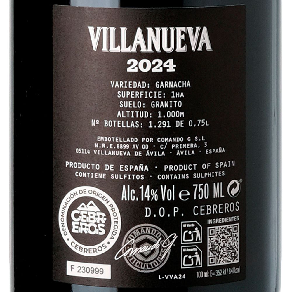 Comando G Villanueva 2024 es un vino tinto seco elaborado con uva Garnacha bajo la D.O.P. Cebreros. La bodega, situada en plena Sierra de Gredos a 100 km de Madrid, se ha consolidado como un referente en la producción de Garnachas de altura, gracias a sus viñedos entre los 900 y 1.200 metros de altitud y a su filosofía de trabajo orgánica y biodinámica, siempre orientada a reflejar con pureza la esencia del terruño.