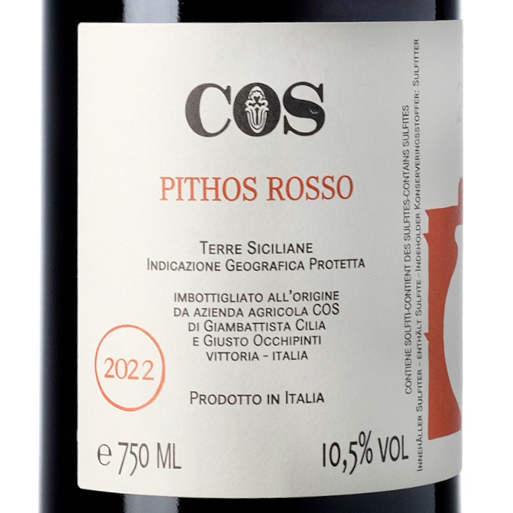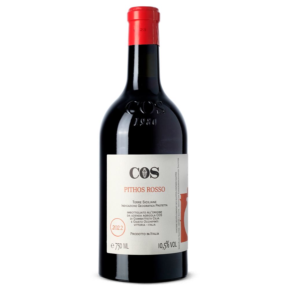 Cos Pithos Rosso 2022 es un vino tinto seco elaborado a partir de uvas Nero d’Avola 100 %, procedentes de la IGT Terre Siciliane, en el corazón del sureste de Sicilia. Creado por la prestigiosa bodega Azienda Agricola COS, este vino refleja la esencia del terroir siciliano y el respeto por la tradición artesanal. La historia de COS comenzó en 1980, cuando Giambattista Cilia y Giuseppe Cilia heredaron una antigua bodega familiar y un viñedo de vides en vaso en Bastonaca (Vittoria, Ragusa), con una superficie de aproximadamente 3,6 hectáreas. Desde entonces, la bodega ha seguido una filosofía de agricultura ecológica y biodinámica, permitiendo que cada cepa alcance su equilibrio natural y exprese con pureza su origen mediterráneo.
