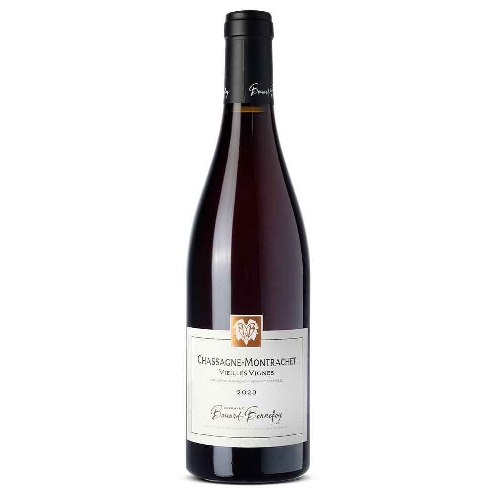 Domaine Bouard-Bonnefoy Chassagne-Montrachet Vieilles Vignes 2023 es un vino tinto seco elaborado al 100 % con Pinot Noir procedente de la prestigiosa región de Borgoña, Francia. El Domaine Bouard-Bonnefoy, una bodega familiar con cuatro generaciones de historia, cultiva 5 hectáreas de viñedo situadas principalmente en Chassagne-Montrachet, además de parcelas en Saint-Aubin y Puligny-Montrachet.