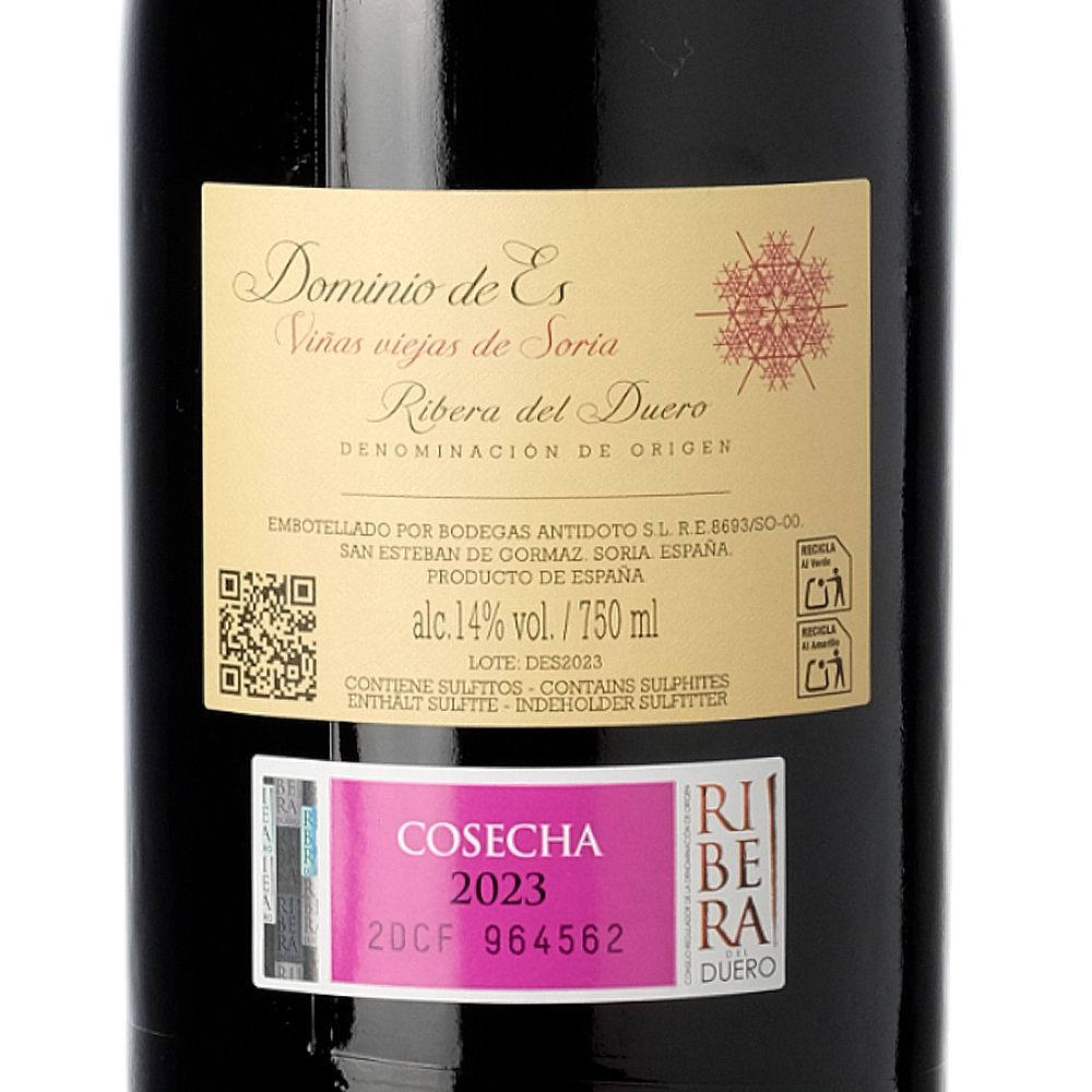 Dominio de Es Viñas Viejas de Soria 2023 es un vino tinto excepcional elaborado por la prestigiosa bodega Dominio de Es, bajo la D.O. Ribera del Duero. Nacido de la visión enológica de Bertrand Sourdais, también creador de los proyectos Antídoto y Galia Soriana, este vino representa la esencia más pura del valle de Atauta y su extraordinario patrimonio vitícola.
