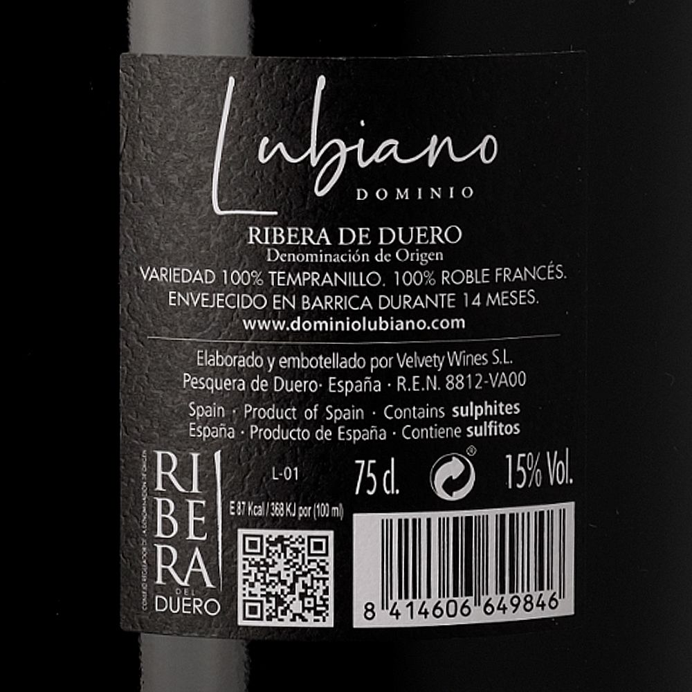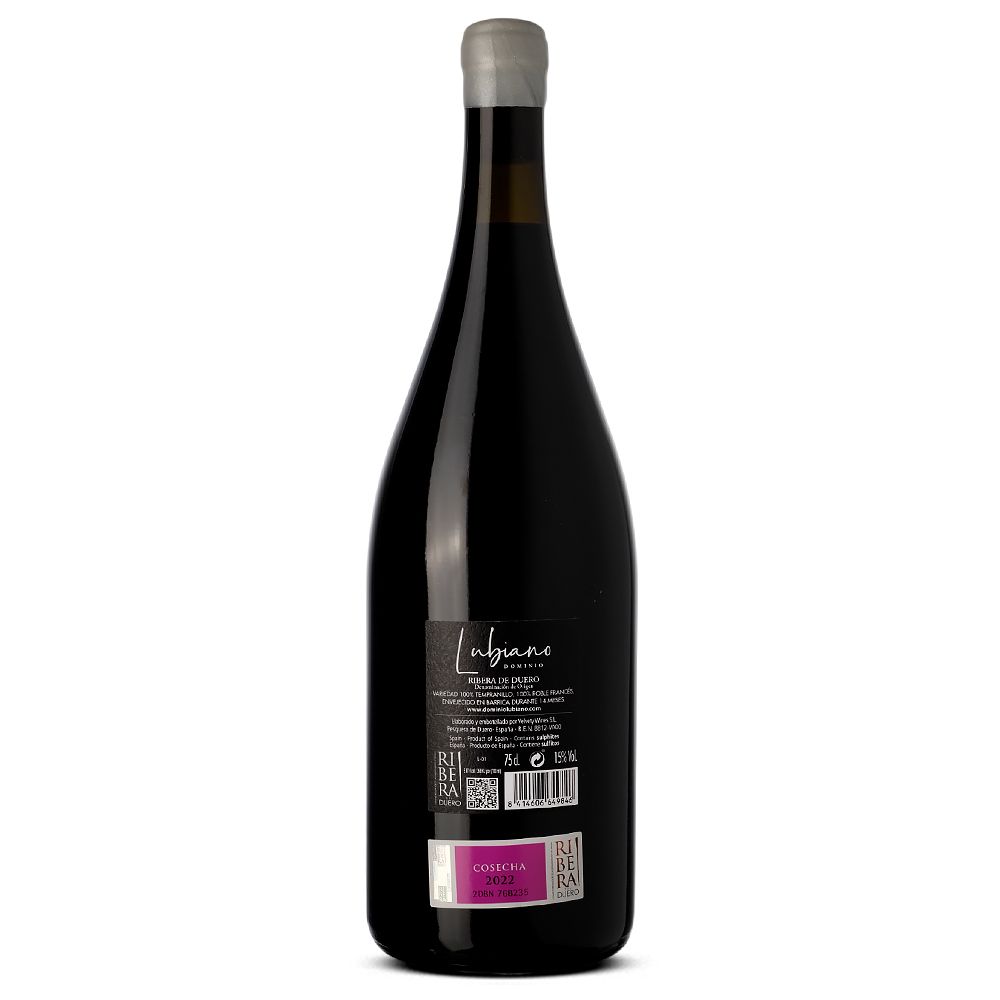 La crianza se lleva a cabo durante 14 meses en barricas de roble francés, lo que aporta sutiles notas especiadas y tostadas, sin enmascarar la fruta, logrando un equilibrio perfecto entre frescura, estructura y elegancia. Con una personalidad refinada y una evolución excepcional en botella, el Dominio Lubiano 2022 es ideal para los amantes del Tempranillo con carácter y sofisticación. Compra vino online y disfruta de esta magnífica expresión de Ribera del Duero, un vino con historia, identidad y una elaboración artesanal única.