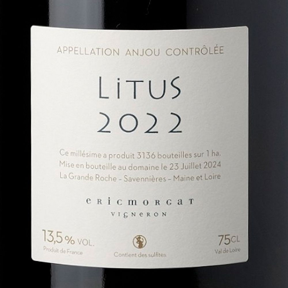 Eric Morgat Litus 2022 es un vino blanco seco elaborado exclusivamente con Chenin Blanc bajo la AOC Anjou (Valle del Loira, Francia). Eric Morgat procede de una familia que cultiva tierras en Anjou desde hace más de dos siglos. En 1995, con tan solo 25 años, fundó su propio proyecto en el corazón de Savennières, apostando por una viticultura exigente y orientada a la expresión pura del viñedo. La propiedad se formó mediante la recuperación de parcelas en barbecho o abandonadas, seleccionando únicamente los mejores terroirs, complejos de trabajar pero de extraordinario potencial. Actualmente cultiva 6 hectáreas plantadas exclusivamente con Chenin Blanc.