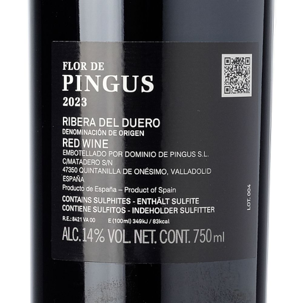 Flor de Pingus 2023 es un vino tinto de carácter excepcional elaborado a partir de Tempranillo de la D.O. Ribera del Duero. Nace en Dominio de Pingus, bajo la meticulosa supervisión del prestigioso ingeniero agrónomo y enólogo Peter Sisseck, considerado uno de los referentes más influyentes del vino español. En esta bodega boutique, Sisseck dirige personalmente cada paso del proceso para asegurar una calidad sobresaliente.