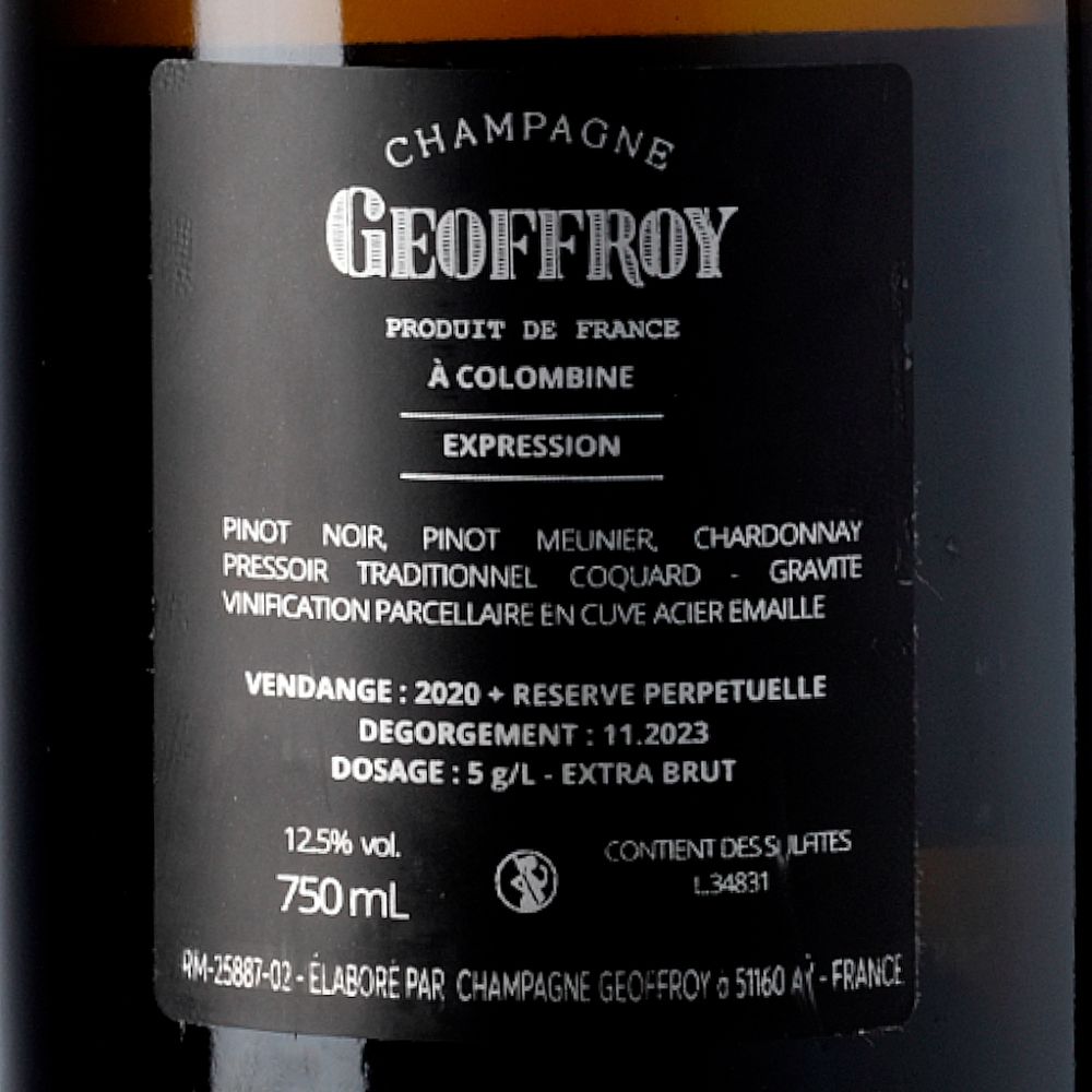 Geoffroy Expression Premier Cru es un champagne vibrante y expresivo, ideal para acompañar aperitivos, mariscos o entrantes delicados, como pasteles de marisco o mollejas de ternera estofadas. Si deseas disfrutar de un champagne con alma, historia y precisión, no dudes en comprar vino online Geoffroy Expression Premier Cru en nuestra tienda.