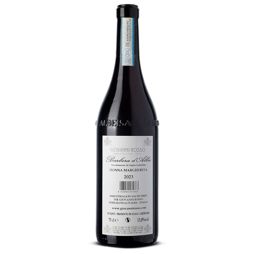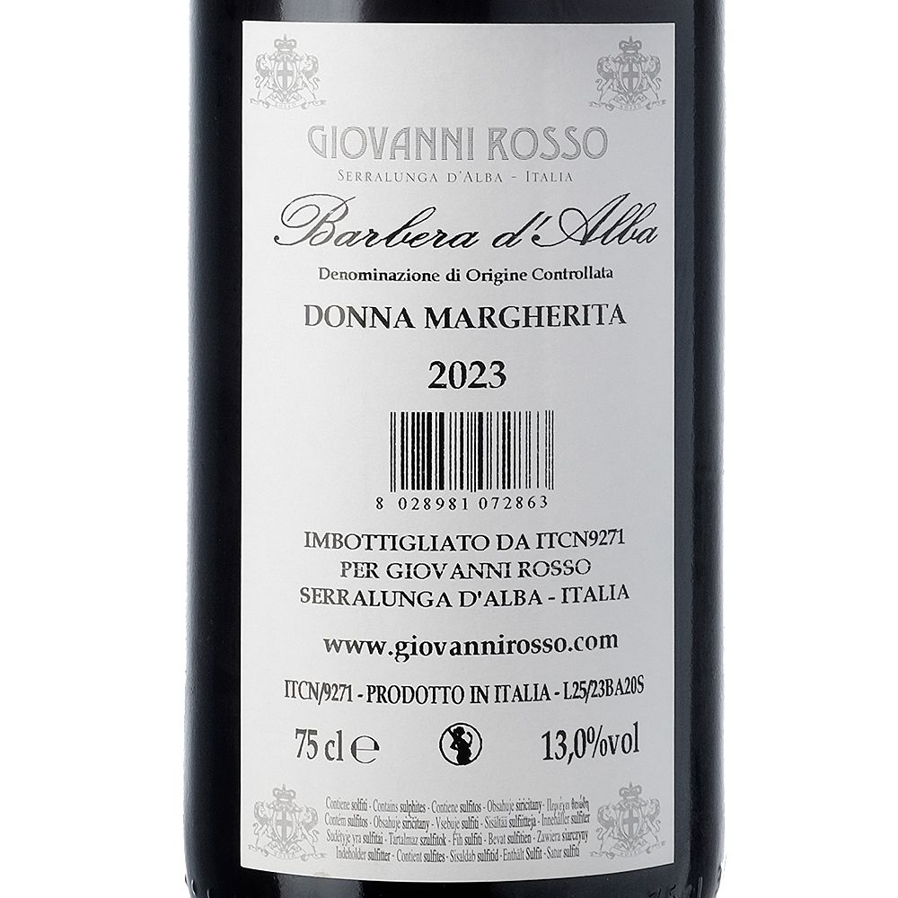 El Donna Margherita Giovanni Rosso 2023 es un exquisito vino tinto, elaborado exclusivamente con uvas Barbera y producido por la bodega Giovanni Rosso en la renombrada región DOC Barbera d’Alba de Piemonte, Italia. Este vino proviene de una tradición que se remonta a 1906, destacando por su vínculo profundo con los viñedos familiares, desde la intensidad de los taninos en los vinos Barolo de Serralunga d’Alba hasta la frescura característica de los vinos del Etna.
