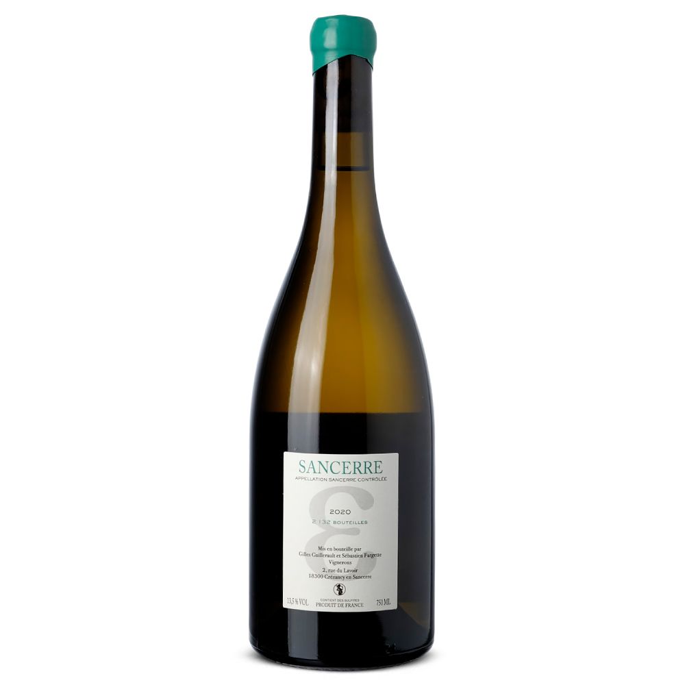 Guillerault-Fargette Sancerre Epsilon 2020 es un vino blanco seco elaborado con Sauvignon Blanc bajo la AOC Sancerre (Valle del Loira, Francia). Elaborado por Domaine Guillerault-Fargette, situado en Crézancy-en-Sancerre, el Domaine cuenta con entre 19 y 21 hectáreas certificadas en ecológico. Bajo la dirección de Gilles Guillerault y Sébastien Fargette, la finca trabaja con prácticas sostenibles y de mínima intervención, dando lugar a vinos blancos de marcada expresión mineral.