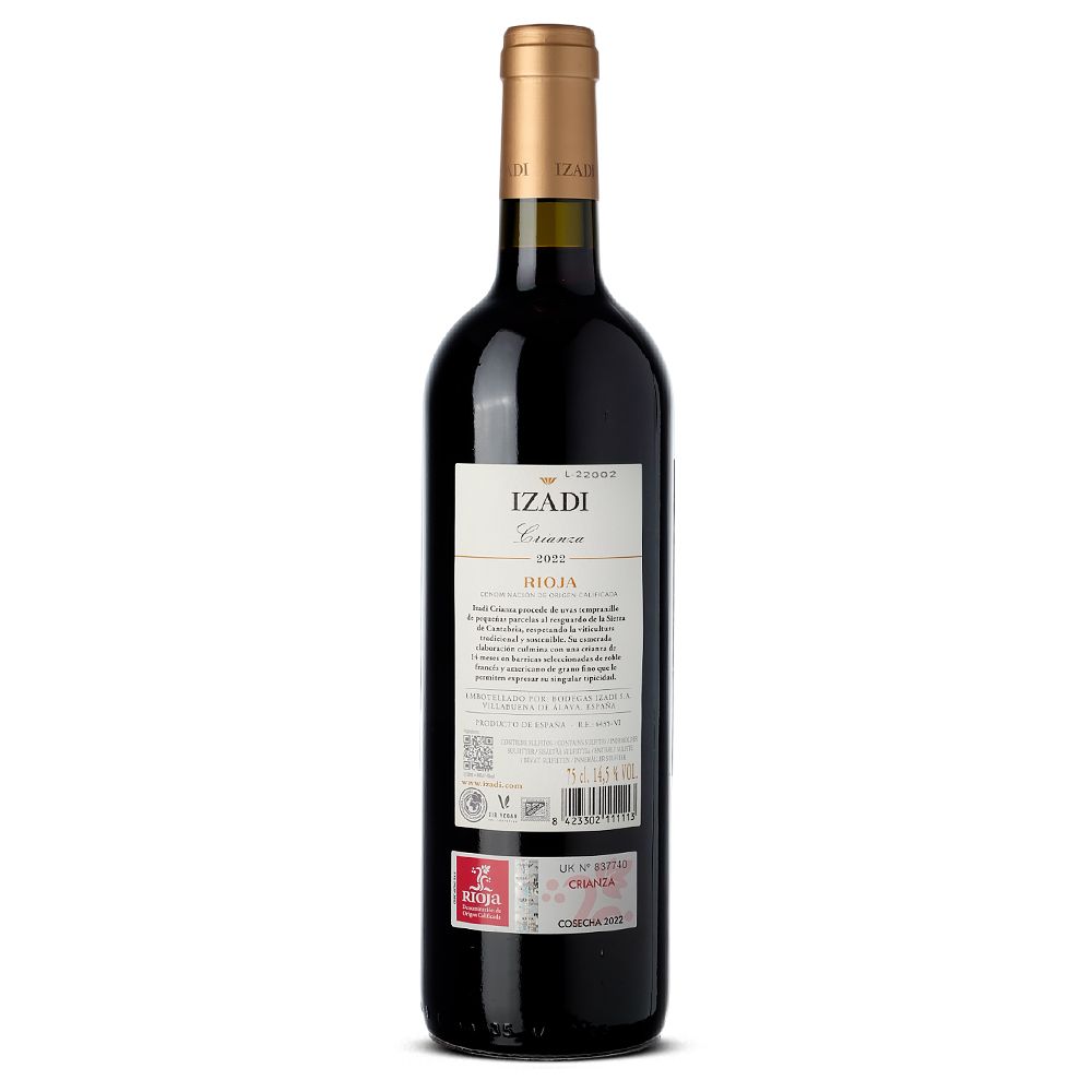 Izadi Crianza 2022 es un vino tinto seco 100% Tempranillo, elaborado en la reconocida D.O.Ca. Rioja por Bodegas Izadi, una bodega que desde 1987 ha apostado por la innovación y el respeto al terruño en el corazón de Rioja Alavesa. Procedente de una cuidada selección de viñedos viejos en vaso con una edad media de 45 años, ubicados entre Villabuena, Samaniego y Ábalos, este vino refleja la riqueza de sus 178 hectáreas de viñedo (70 de ellas propias).