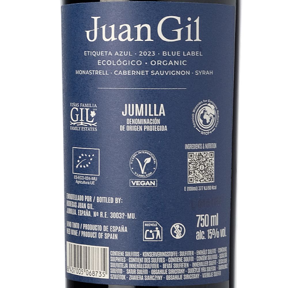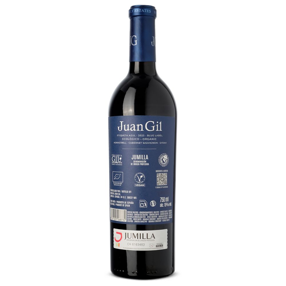 Descubre el Juan Gil Etiqueta Azul 2023, un vino tinto excepcionalmente elaborado por las prestigiosas bodegas Juan Gil en la región de D.O.P. Jumilla. Este vino se forja con esmero a partir de uvas seleccionadas de viñedos de Monastrell, Cabernet-Sauvignon y Syrah, cultivadas a una altitud privilegiada de unos 700 metros. Sumérgete en la historia que se remonta a 1916, cuando el visionario Juan Gil Giménez, bisabuelo de los actuales artífices de este vino, dio sus primeros pasos en el fascinante mundo del vino.