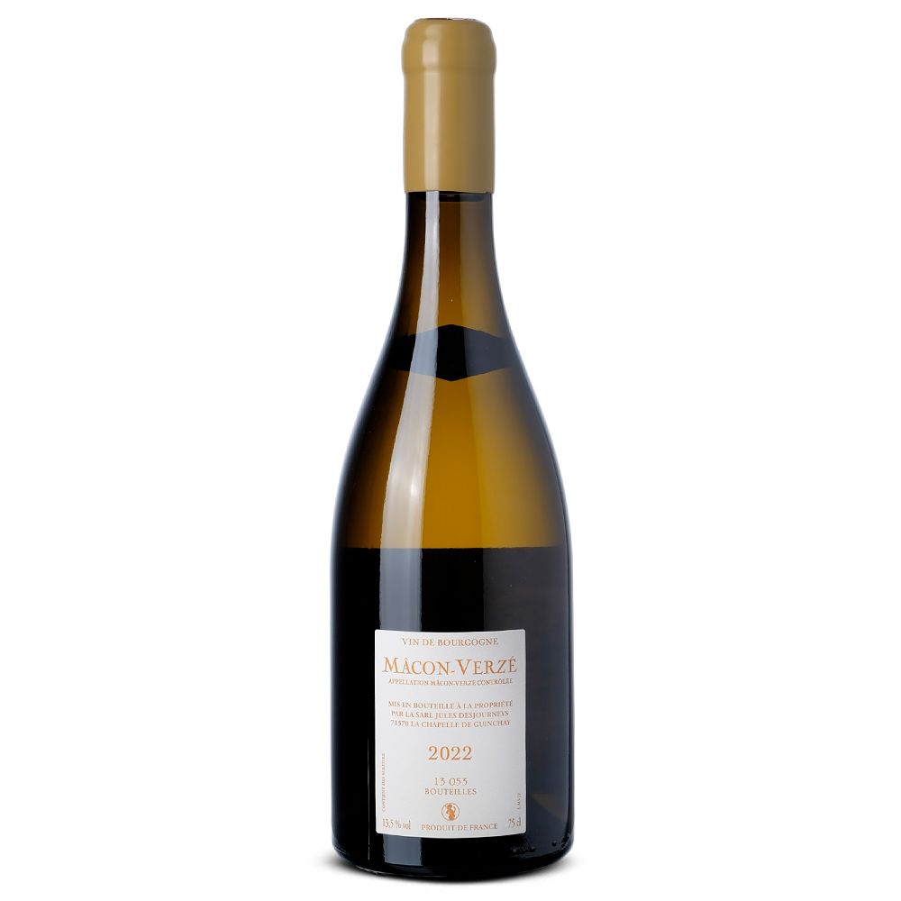 Jules Desjourneys Mâcon-Verzé 2022 es un vino blanco seco elaborado con uva Chardonnay bajo la denominación AOC Mâcon-Verzé, en Borgoña (Francia). Este vino nace en Domaine Jules Desjourneys, bodega ubicada en el sur de Borgoña y reconocida por su meticuloso trabajo en las regiones de Mâconnais y Beaujolais.