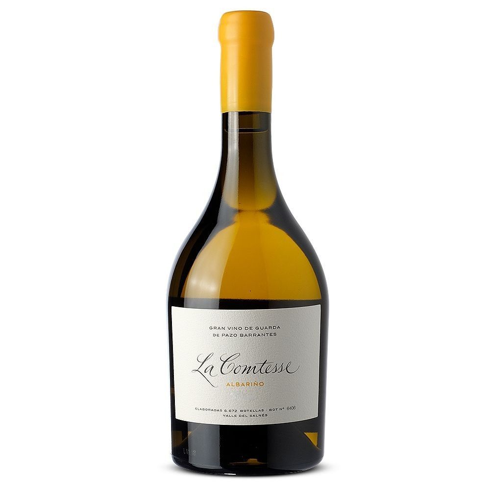 La Comtesse de Pazo Barrantes 2020 se distingue como un vino blanco seco de calidad superior, meticulosamente elaborado con 100% Albariño en la Denominación de Origen Rías Baixas. Este vino es una creación exclusiva de Pazo Barrantes, una propiedad de la reconocida bodega Marqués de Murrieta.