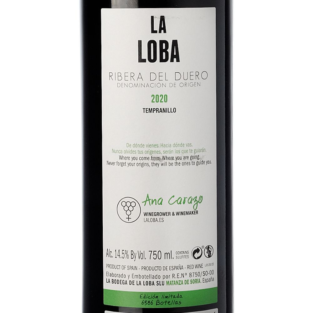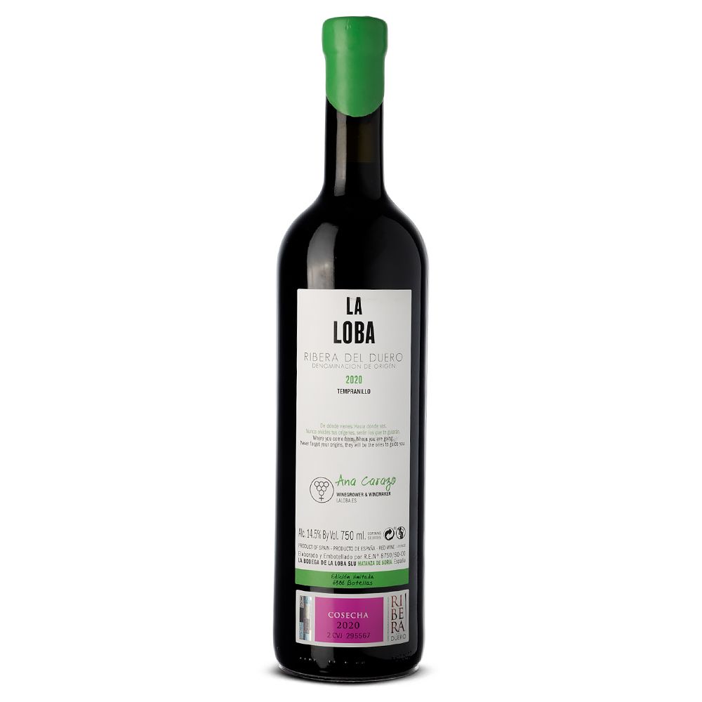 La Loba 2020, un vino tinto con denominación de origen Ribera del Duero, es cuidadosamente elaborado por la bodega La Loba, ubicada en la pintoresca aldea de Matanza de Soria. Este exquisito vino se produce a partir de la variedad de uva Tempranillo, conocida en la región como Tinta del País. La bodega, situada a 900 metros de altitud, sumerge sus viñedos en un clima único caracterizado por inviernos prolongados, lluvias moderadas, primaveras con heladas tardías y veranos cortos pero intensos, acompañados de noches frescas.