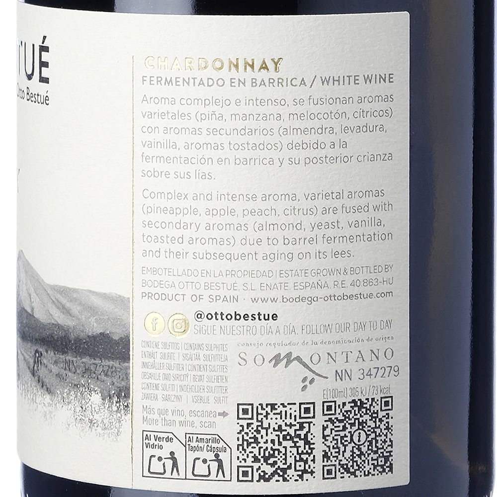 Otto Bestué Chardonnay Fermentado en Barrica 2024 es un vino blanco seco de la D.O. Somontano. Este Chardonnay nace del compromiso de la familia Otto Bestué con la excelencia vinícola, una tradición que se mantiene viva a través de generaciones.