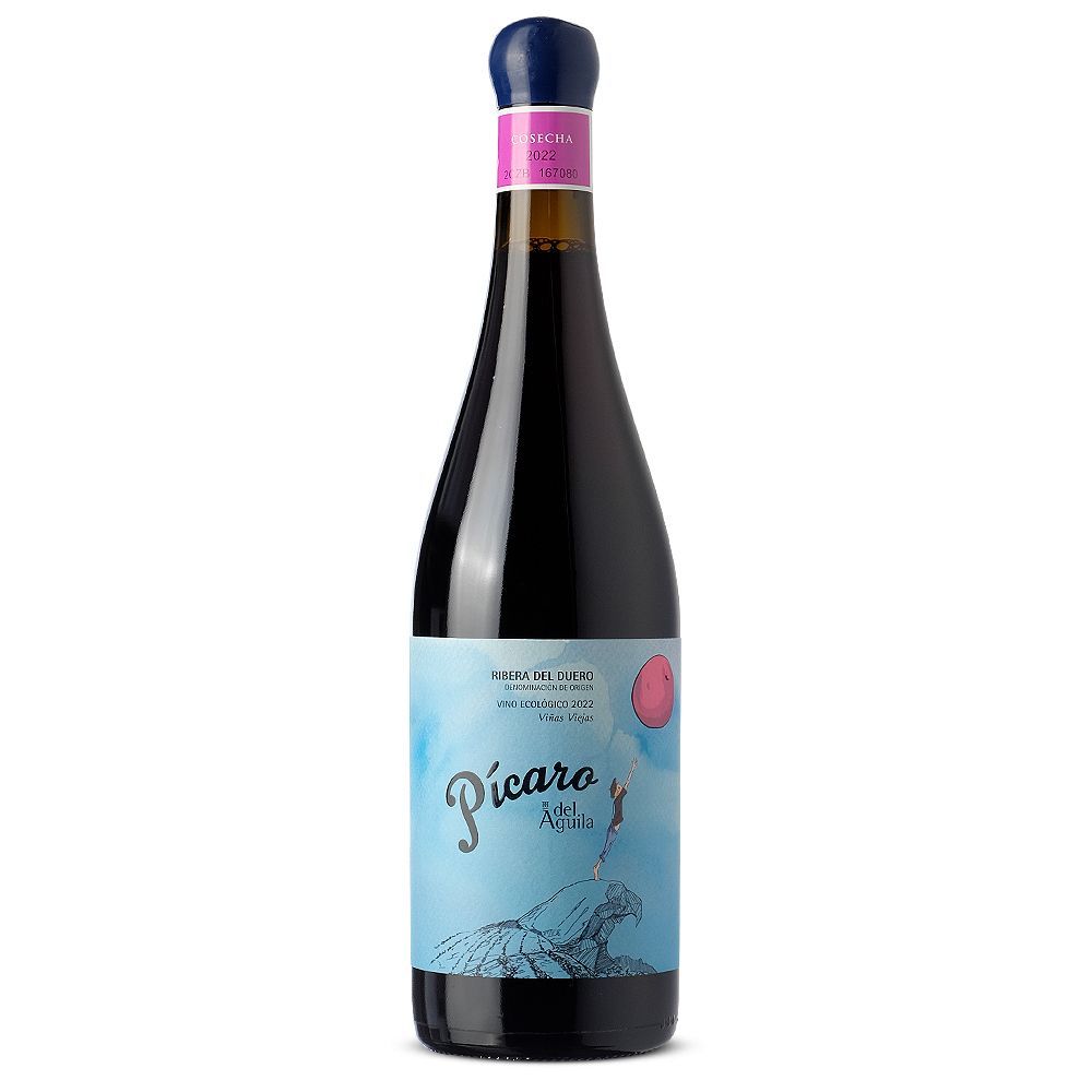 Explora la singularidad de Pícaro del Águila 2022, disponible para comprar en nuestra tienda online. Este tinto, armonioso entre la fruta y la madera, con una acidez vibrante, refleja la pasión y dedicación de Dominio del Águila.