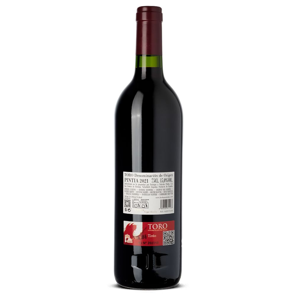 Pintia 2021, un destacado vino de la D.O. Toro, es una creación excepcional del grupo vinícola Tempos Vega Sicilia. Este viñedo se encuentra a orillas del río Duero, dentro de la D.O. Toro, abarcando una superficie de 110 hectáreas en San Román de Hornija y Pedrosa del Rey. Las condiciones climáticas extremas, con inviernos fríos y veranos cálidos, influencian los complejos suelos caracterizados por una abundancia de cantos rodados.