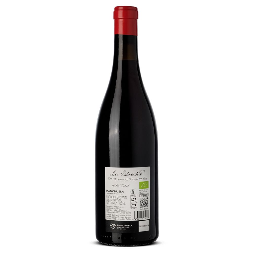 La Estrecha 2024 es un vino tinto seco elaborado con Bobal de la D.O. Manchuela por la Bodega Ponce, un proyecto biodinámico situado en una de las zonas más auténticas y todavía poco conocidas de España. La bodega fue fundada en 2005 por Juan Antonio Ponce, considerado un referente absoluto de la Bobal, quien inició este camino junto a su padre con solo 23 años, tras una sólida etapa de cinco años como mano derecha del reconocido enólogo Telmo Rodríguez.