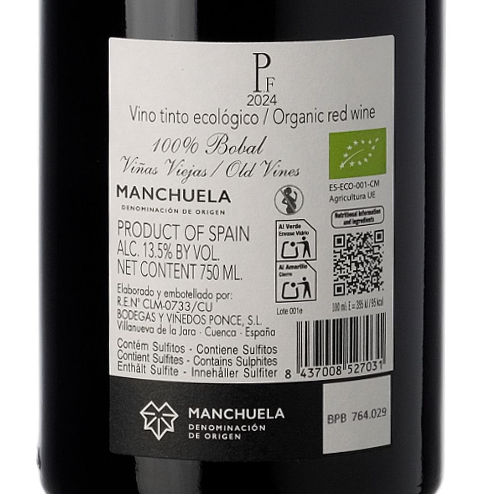 Ponce PF 2024 es un vino tinto seco elaborado con Bobal de la D.O. Manchuela por la Bodega Ponce, un proyecto biodinámico situado en la región de Manchuela, en España. La bodega fue fundada en 2005 por Juan Antonio Ponce, considerado uno de los grandes referentes de la variedad Bobal. Juan Antonio inició este camino junto a su padre con tan solo 23 años, tras una etapa clave de cinco años como mano derecha del prestigioso enólogo Telmo Rodríguez.