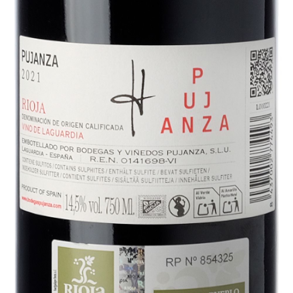 Pujanza 2021 es un vino tinto seco de la D.O.Ca. Rioja, elaborado a partir de Tempranillo y nacido del saber hacer de Bodegas y Viñedos Pujanza. Este vino procede de una cuidada selección de uvas cultivadas en distintos viñedos del municipio de Laguardia, situados entre 450 y 600 metros de altitud. El secreto de su carácter reside en el trabajo con 23 parcelas diferenciadas, lo que permite ajustar el coupage final cada vendimia según las particularidades climáticas de la añada. Los suelos arcillo-calcáreos aportan frescura, equilibrio y una marcada identidad al vino.