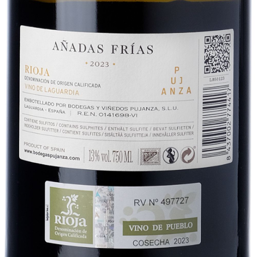 Pujanza Añadas Frías 2023 es un vino blanco seco elaborado con Viura, la variedad blanca emblemática de la D.O.Ca. Rioja. Más que un vino ligado a una simple cosecha, Añadas Frías encierra un secreto: solo ve la luz en aquellos años especialmente fríos, cuando los ciclos de maduración son más largos y el vino adquiere una marcada capacidad de envejecimiento. En estas añadas singulares nace este blanco de producción limitada, con una acidez vibrante y una personalidad que recuerda a regiones vitícolas más septentrionales.