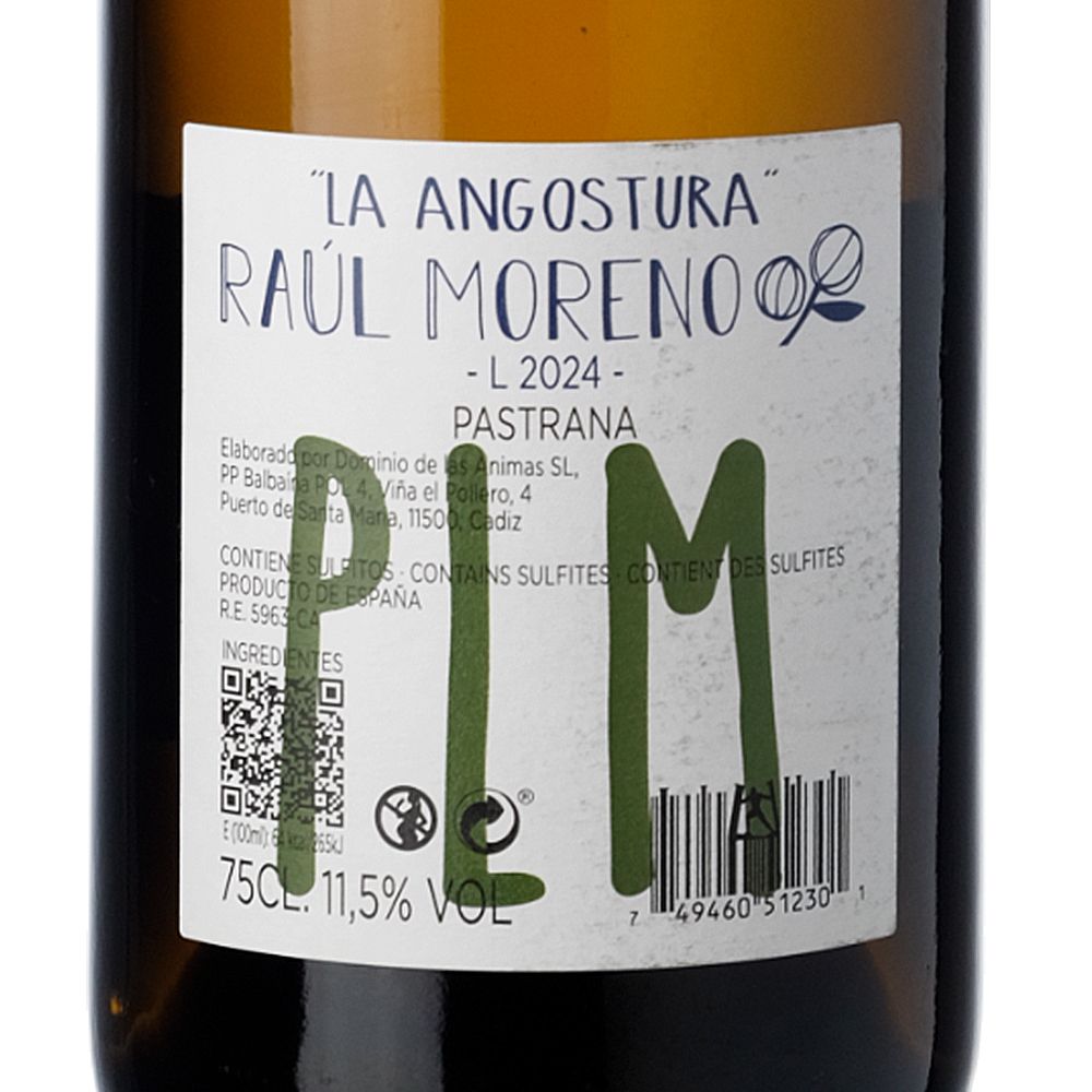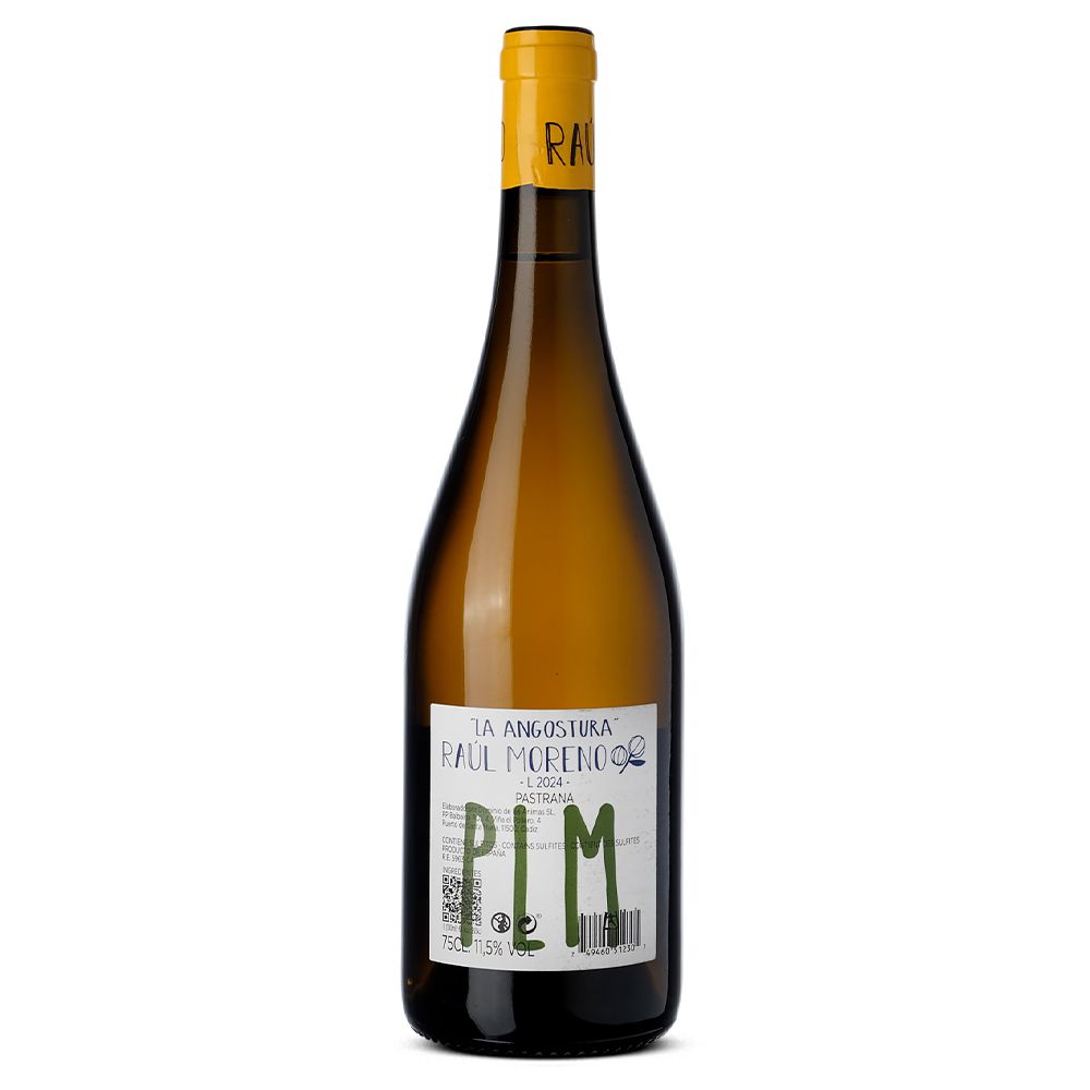 La Angostura 2024 es un vino blanco seco de autor elaborado por Raúl Moreno, un enólogo sevillano de amplia trayectoria internacional, reconocido por su enfoque personal y de mínima intervención. Su trabajo se centra en crear vinos singulares que esconden el secreto de unir tradición y vanguardia, especialmente a partir de viñedos antiguos y de cultivo orgánico en el Marco de Jerez —Jerez y Sanlúcar de Barrameda—. En sus elaboraciones conviven uvas autóctonas como Palomino con variedades internacionales, aplicando técnicas históricas como la crianza bajo flor o el uso de ánforas, junto a métodos contemporáneos que desafían los límites clásicos de la región.