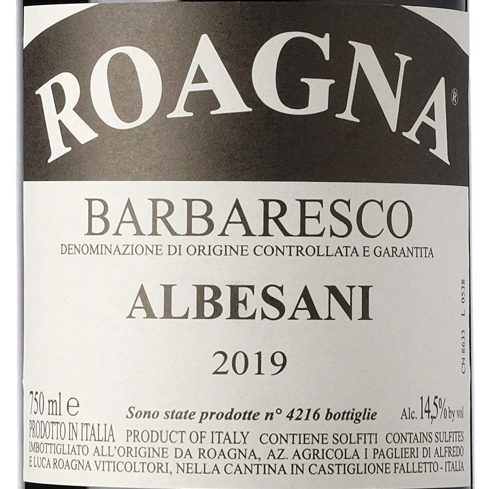 Con un carácter refinado y un gran potencial de guarda, Roagna Barbaresco Albesani 2019 es una joya para coleccionistas y amantes del Nebbiolo. Si buscas exclusividad y tradición, no pierdas la oportunidad de comprar vino online y disfrutar de una de las expresiones más puras de Barbaresco.