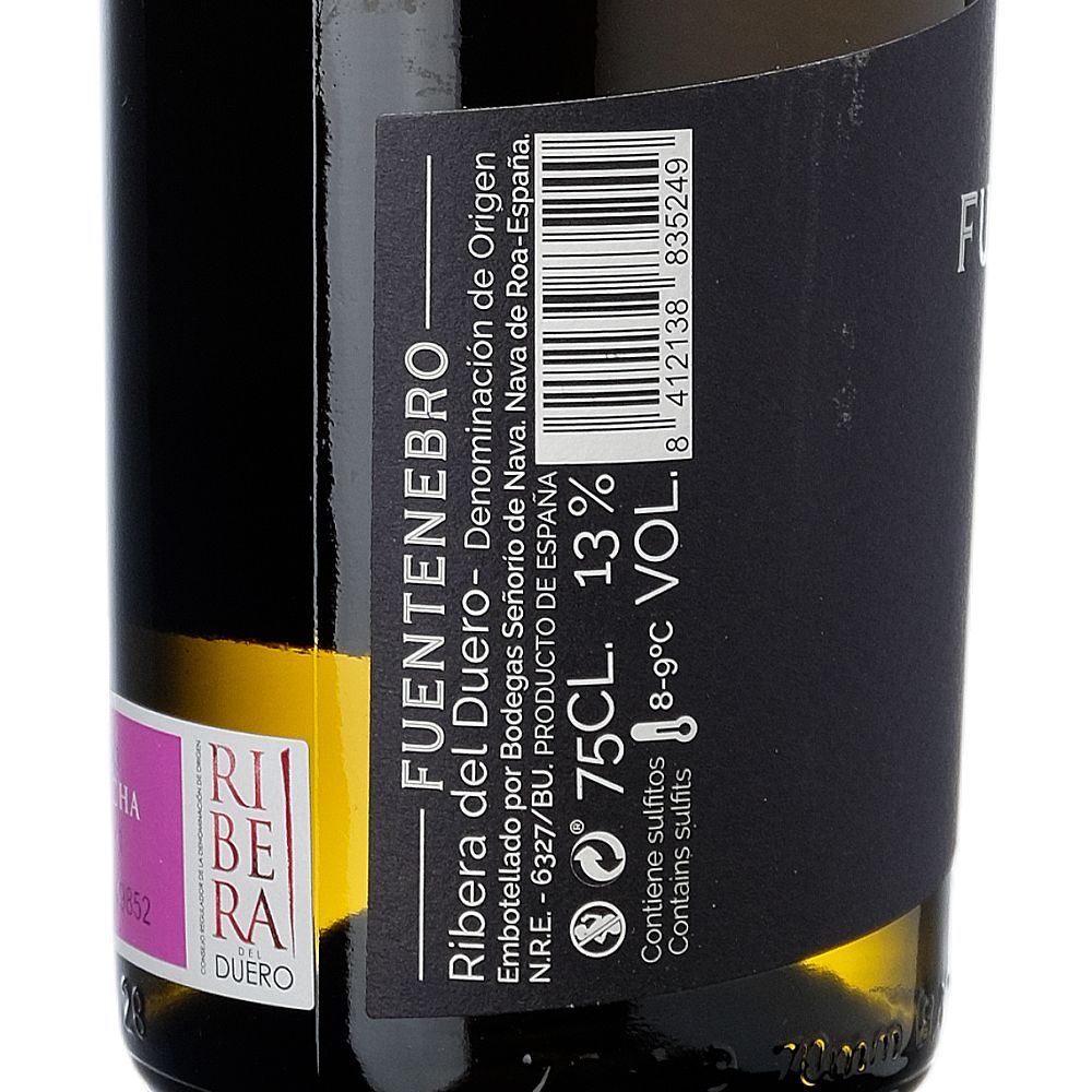 Fuentenebro Blanco 2021 es un vino blanco seco elaborado exclusivamente con Albillo Mayor, procedente de la D.O. Ribera del Duero y producido por Señorío de Nava. Este vino nace de viñedos situados a más de 900 metros de altitud en las provincias de Soria y Burgos, donde se encuentran cepas centenarias que aportan carácter y profundidad al vino. Los viñedos se asientan sobre suelos poco profundos con base de roca caliza, un factor que contribuye a la mineralidad y personalidad del vino.