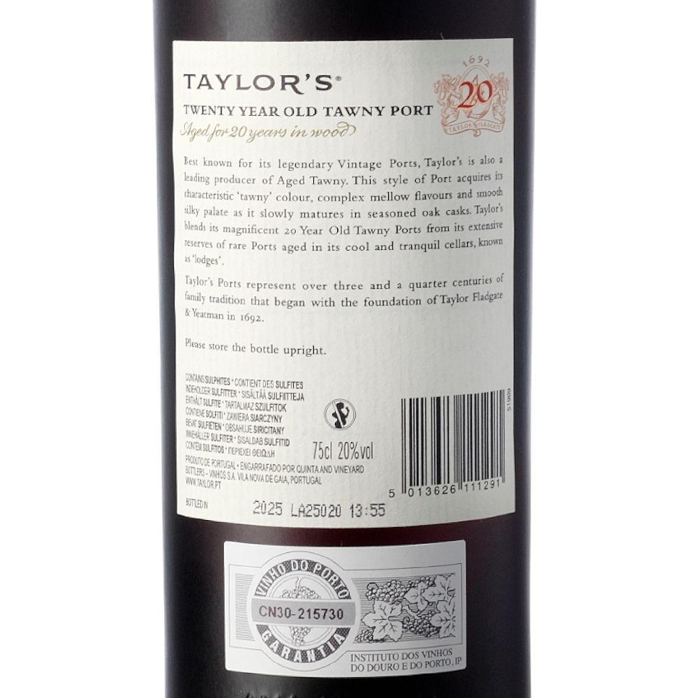 El Taylor’s 20 Year Old Tawny Port es un vino tawny excepcional, cuidadosamente elaborado por la renombrada bodega Taylor’s en Portugal. Reconocida como una de las casas más respetadas en la producción de vinos de Oporto envejecidos en madera, Taylor’s presenta este tawny como un ejemplo perfecto de su tradición y maestría.