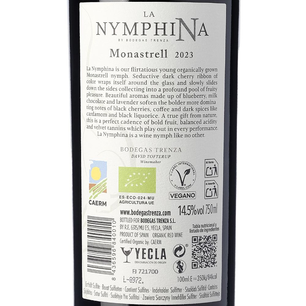 Trenza La Nymphina Monastrell 2023 es un vino tinto seco elaborado exclusivamente con uvas Monastrell de la D.O. Yecla. Esta creación de Bodegas Trenza refleja la visión de los hermanos daneses David y Jonas, quienes convirtieron su pasión vinícola en un proyecto real en tierras murcianas.