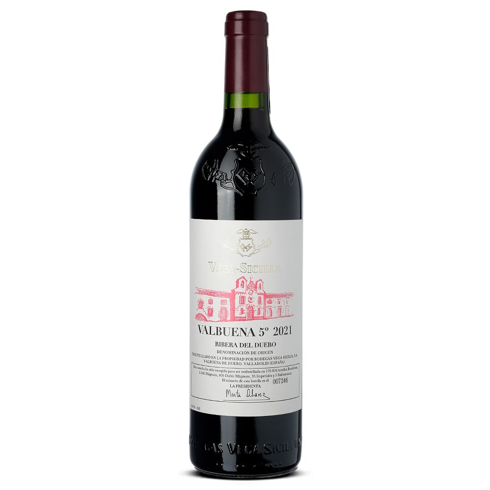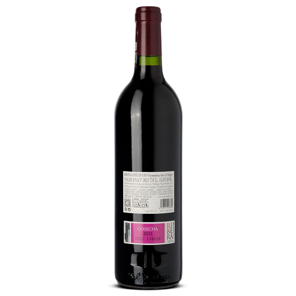 Las uvas que dan vida al Valbuena 5º provienen de parcelas seleccionadas en suaves laderas con suelos ricos en calcio, lo que aporta un carácter distintivo y una estructura única a este vino. Los viñedos de la Finca Vega Sicilia abarcan 210 hectáreas, con una edad media de 35 años y altitudes que oscilan entre 700 y 900 metros sobre el nivel del mar, condiciones ideales para producir uvas de calidad excepcional.